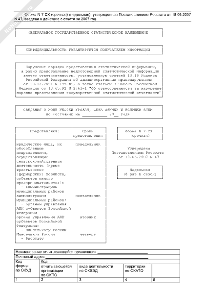 - 2072Сведения о ходе уборки урожая, сева озимых и вспашки зяби. ФОРМА № 7-СХ (срочная) (недельная (8 раз в сезон))
