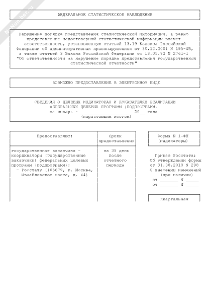 - 2080Сведения о целевых индикаторах и показателях реализации федеральных целевых программ (подпрограмм). Форма № 1-ФП (индикаторы) (квартальная)