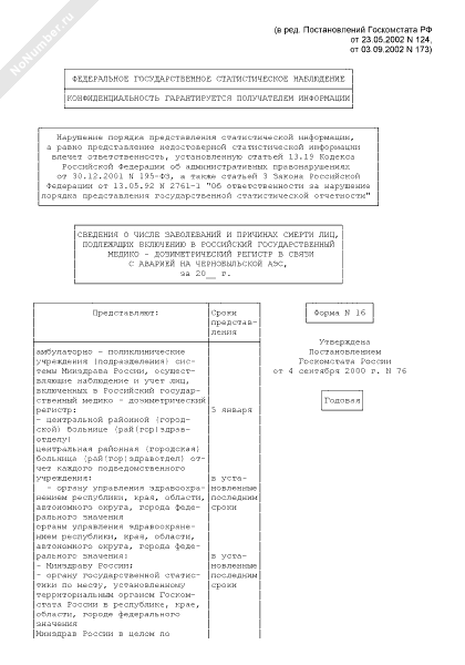 - 2110Сведения о числе заболеваний и причинах смерти лиц, подлежащих включению в Российский государственный медико-дозиметрический регистр в связи с аварией на Чернобыльской АЭС (форма № 16)