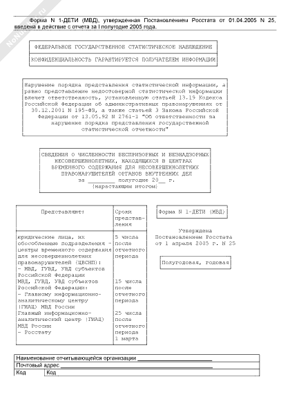 - 2119Сведения о численности беспризорных и безнадзорных несовершеннолетних, находящихся в центрах временного содержания для несовершеннолетних правонарушителей органов внутренних дел. Форма № 1-ДЕТИ (МВД)