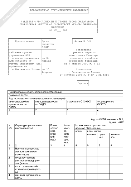 - 2104Сведения о численности и уровне профессионального образования работников организаций агропромышленного комплекса. Форма № 2-К