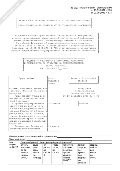 - 2109Сведения о численности работающих инвалидов и пенсионеров по старости на спецпредприятиях (цехах, участках). Форма № 2-Т (собес) сводная