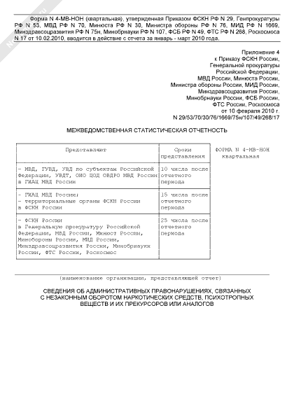 - 2202Сведения об административных правонарушениях, связанных с незаконным оборотом наркотических средств, психотропных веществ и их прекурсоров или аналогов. Форма № 4-МВ-НОН (квартальная)