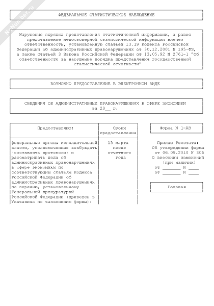 - 2206Сведения об административных правонарушениях в сфере экономики. Форма № 1-АЭ (годовая)