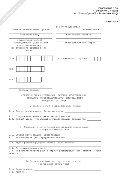 - 2207Сведения об аккредитации (лишении аккредитации) филиалов (представительств) иностранного юридического лица. Форма № АФ