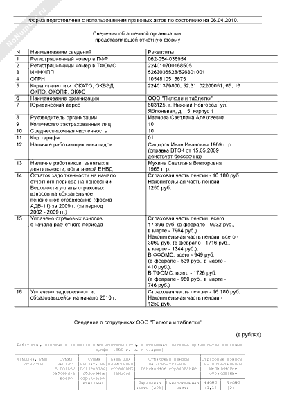- 2210Сведения об аптечной организации, представляющей отчетную форму № РСВ-1 ПФР