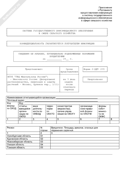 - 2212Сведения об ареалах, потенциально подверженных поражению вредителями. Форма № 2-ДДЗ (СХ)