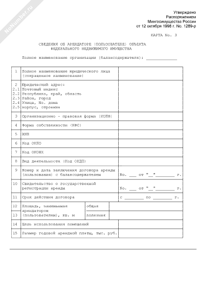 - 2211Сведения об арендаторе (пользователе) объекта федерального недвижимого имущества. Карта № 3