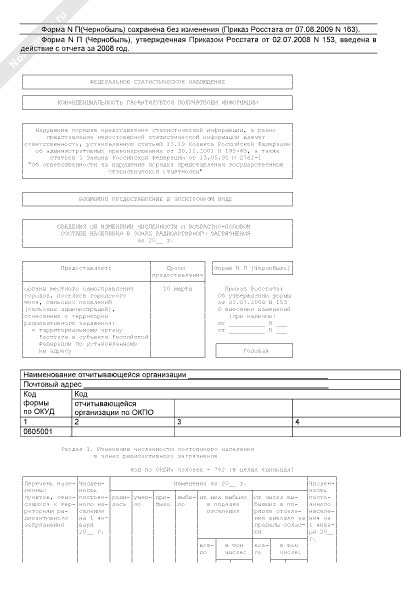 - 2228Сведения об изменении численности и возрастно-половом составе населения в зонах радиоактивного загрязнения. Форма № П (Чернобыль) (годовая)