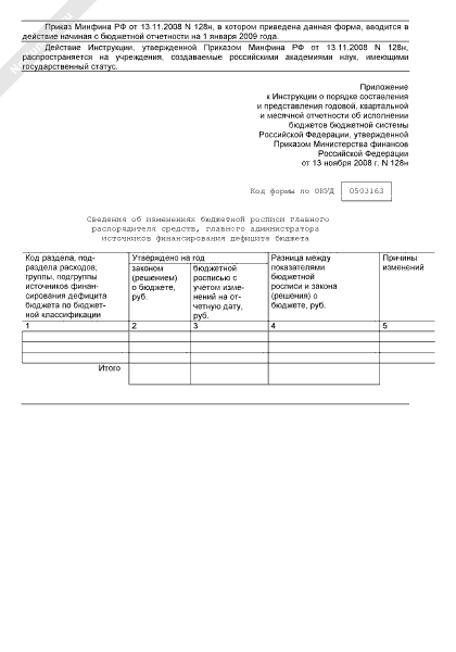 - 2233Сведения об изменениях бюджетной росписи главного распорядителя средств бюджета (приложение к пояснительной записке к бюджетной отчетности территориального фонда обязательного медицинского страхования)