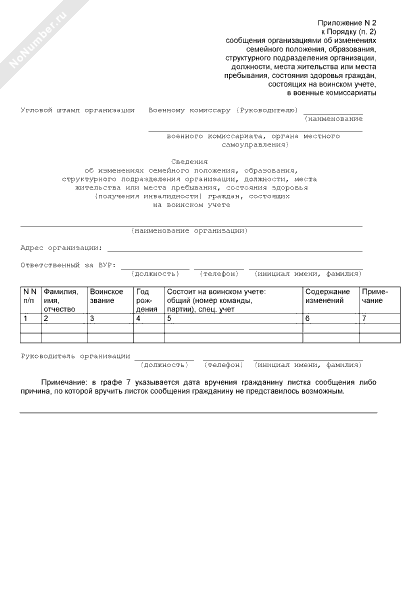 - 2240Сведения об изменениях семейного положения, образования, структурного подразделения организации, должности, места жительства или места пребывания, состояния здоровья (получения инвалидности) граждан, состоящих на воинском учете