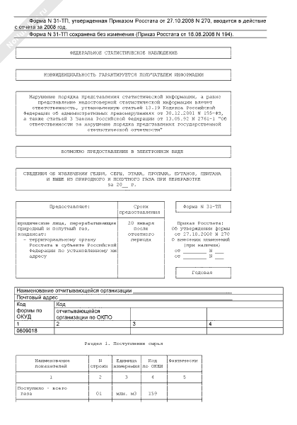 - 2221Сведения об извлечении гелия, серы, этана, пропана, бутанов, пентана и выше из природного и попутного газа при переработке. Форма № 31-ТП