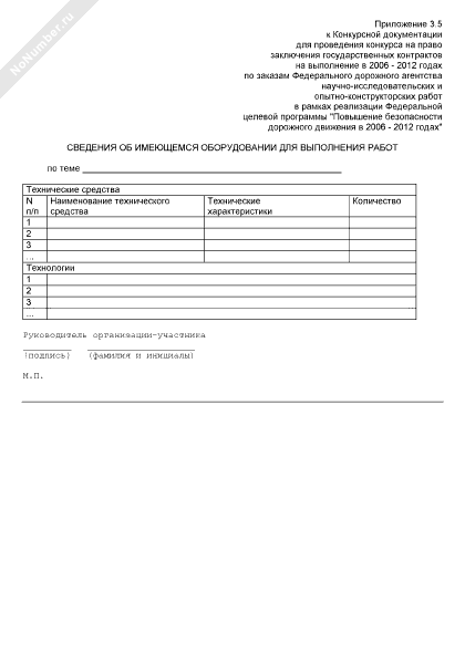 - 2244Сведения об имеющемся оборудовании для выполнения работ для участия в конкурсе на право заключения государственного контракта на выполнение научно-исследовательских и опытно-конструкторских работ по заказам Федерального дорожного агентства