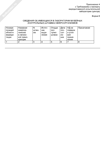 - 2247Сведения об имеющихся в лаборатории музейных (контрольных) штаммах микроорганизмов (форма № 6)