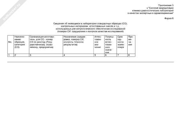 - 2245Сведения об имеющихся в лаборатории стандартных образцах (со), контрольных материалах, аттестованных смесях и т.д., используемых для метрологического обеспечения исследований (поверки СИ, градуировки и контроля качества исследований) (форма № 6)