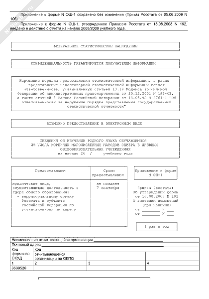 - 2241Сведения об изучении родного языка обучающимися из числа коренных малочисленных народов Севера в дневных общеобразовательных учреждениях. Приложение к форме № ОШ-1