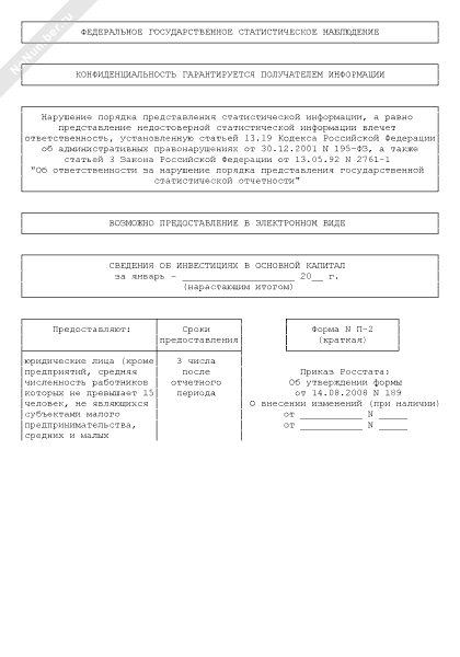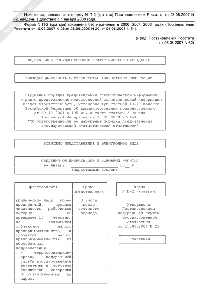 - 2276Сведения об инвестициях в основной капитал. Форма № П-2 (краткая) (месячная)