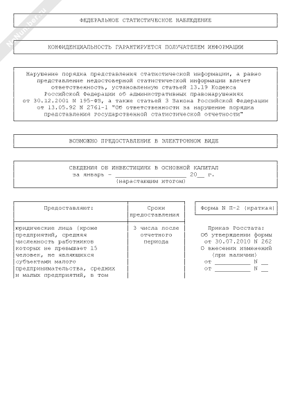 - 2264Сведения об инвестициях в основной капитал. Форма № П-2 (краткая)
