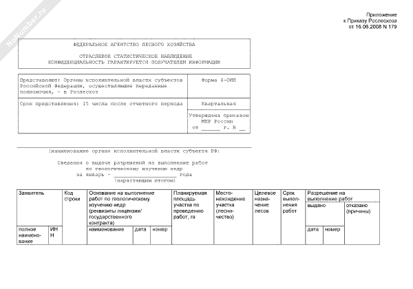 - 230Сведения о выдаче разрешений на выполнение работ по геологическому изучению недр. Форма № 4-ОИП