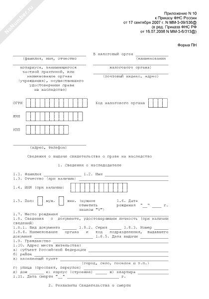 - 229Сведения о выдаче свидетельства о праве на наследство. Форма № ПН