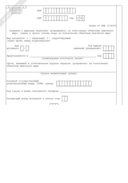 - 227Сведения о выданных лицензиях (разрешениях) на пользование объектами животного мира, суммах и сроках уплаты сбора за пользование объектами животного мира. Форма № 1114005