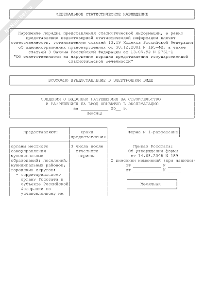 - 231Сведения о выданных разрешениях на строительство и разрешениях на ввод объектов в эксплуатацию. Форма № 1-разрешение