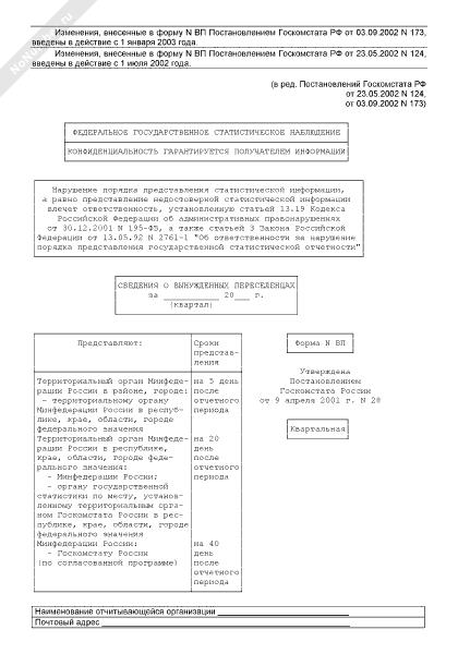 - 232Сведения о вынужденных переселенцах. Форма № ВП