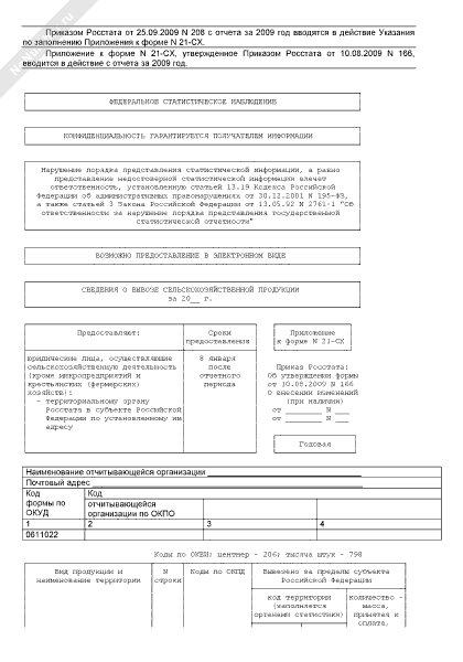 - 222Сведения о вывозе сельскохозяйственной продукции (приложение к форме № 21-СХ (годовая))
