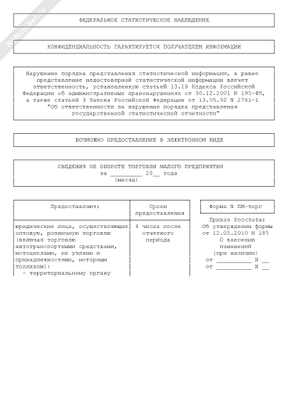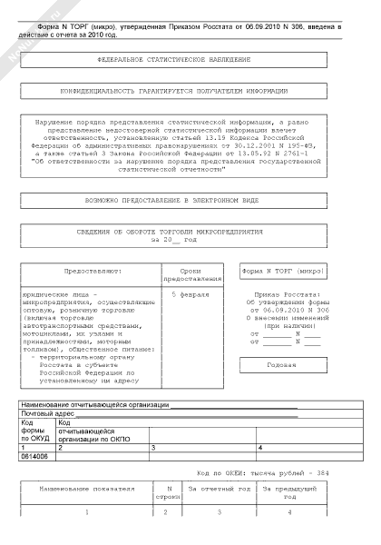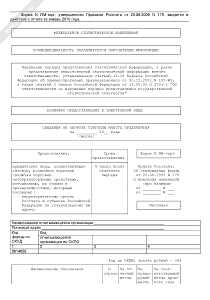 - 2438Сведения об обороте торговли малого предприятия. Форма № ПМ-торг (месячная)