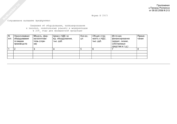 - 2435Сведения об оборудовании, запланированном к закупке, капитальному ремонту и модернизации для гражданской продукции. Форма № IV/3