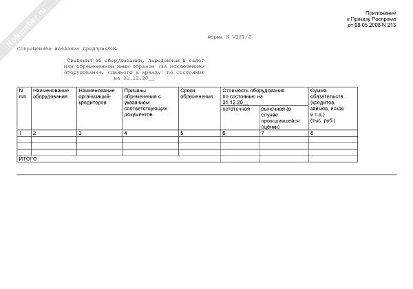 - 2436Сведения об оборудовании, переданном в залог или обремененном иным образом (за исключением оборудования, сданного в аренду). Форма № VIII/2