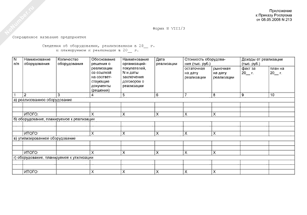 - 2437Сведения об оборудовании предприятия, находящегося в сфере ведения и координации Роспрома, реализованном и планируемом к реализации. Форма № VIII/3
