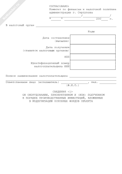 - 2432Сведения об оборудовании, приобретенном и (или) полученном в порядке производственных инвестиций, вложенных в модернизацию основных фондов объекта в г. Серпухов Московской области (форма № 10)