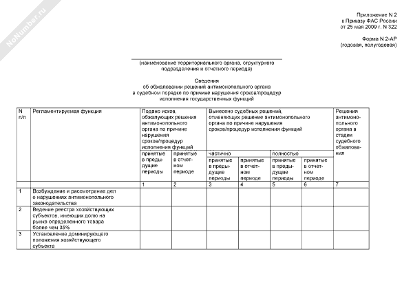 - 2427Сведения об обжаловании решений антимонопольного органа в судебном порядке по причине нарушения сроков/процедур исполнения государственных функций. Форма № 2-АР (годовая, полугодовая)