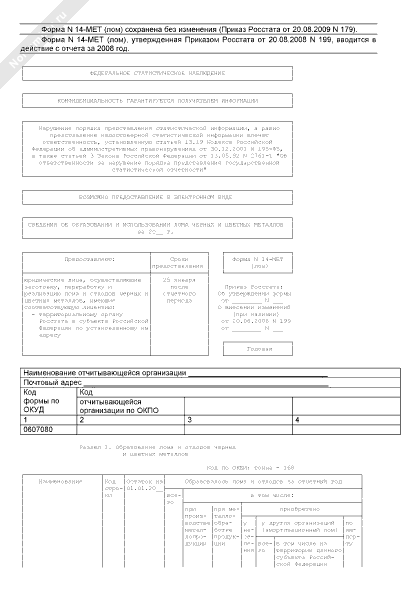 - 2457Сведения об образовании и использовании лома черных и цветных металлов. Форма № 14-МЕТ (лом) (годовая)