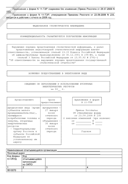 - 2456Сведения об образовании и использовании вторичных энергетических ресурсов (приложение к форме № 11-ТЭР) (годовая)