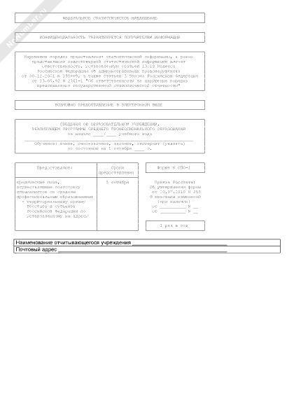 - 2459Сведения об образовательном учреждении, реализующем программы среднего профессионального образования. Форма № СПО-1