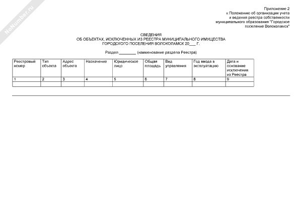 - 2506Сведения об объектах, исключенных из реестра муниципального имущества городского поселения Волоколамск Волоколамского района Московской области