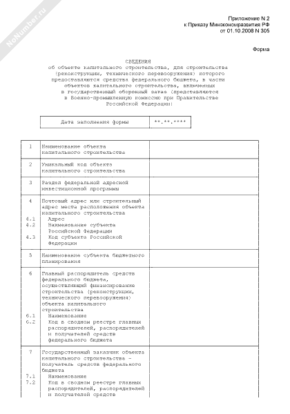 - 2517Сведения об объекте капитального строительства, для строительства (реконструкции, технического перевооружения) которого предоставляются средства федерального бюджета, в части объектов капитального строительства, включенных в государственный оборонный заказ (представляются в Военно-промышленную комиссию при Правительстве Российской Федерации)