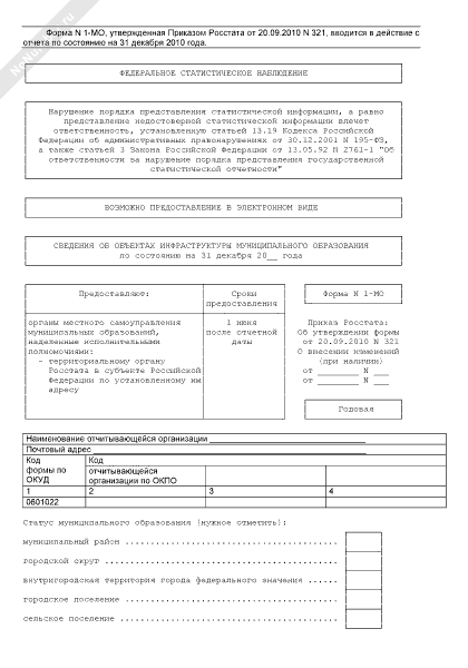 - 2532Сведения об объектах инфраструктуры муниципального образования. Форма № 1-МО (годовая)