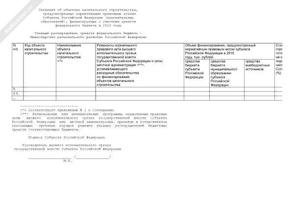 - 2529Сведения об объектах капитального строительства, предусмотренных нормативными правовыми актами субъекта Российской Федерации (муниципальных образований), финансируемых с участием средств федерального бюджета в 2010 году (приложение к соглашению)