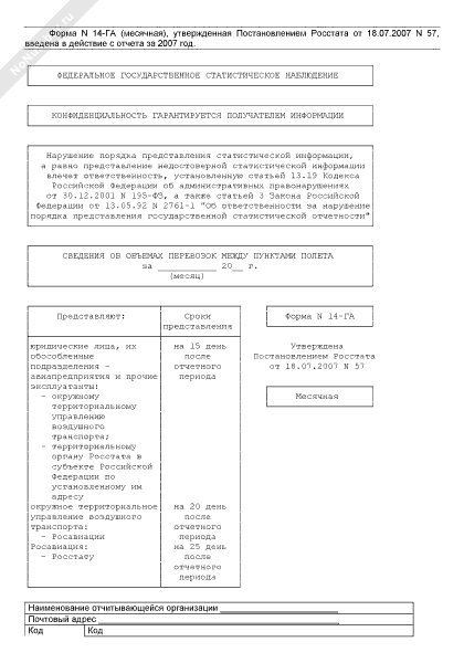 - 2523Сведения об объемах перевозок между пунктами полета. Форма № 14-ГА (месячная)