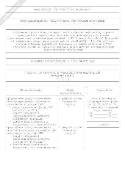 - 2540Сведения об оказании и финансировании медицинской помощи населению. Форма № 62 (годовая)