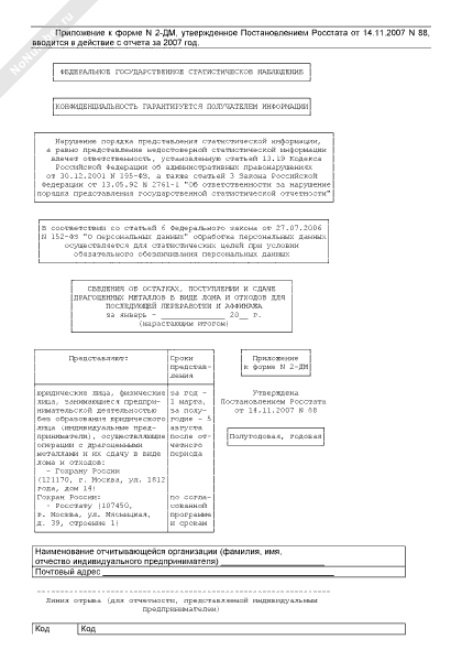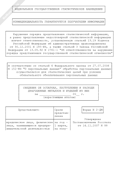 - 2621Сведения об остатках, поступлении и расходе драгоценных металлов и изделий из них. Форма № 2-ДМ (полугодовая, годовая)