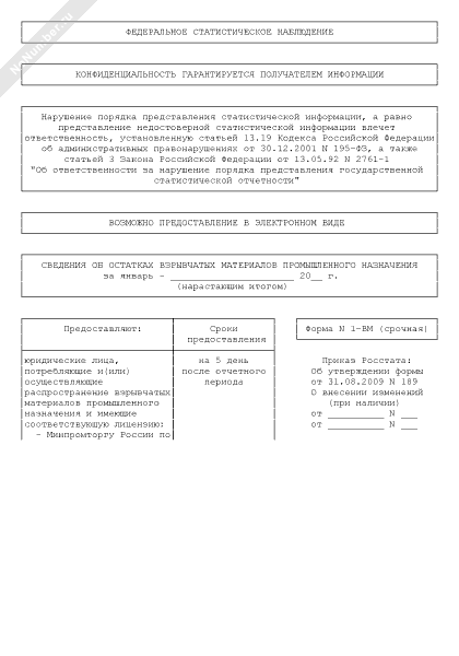 - 2624Сведения об остатках взрывчатых материалов промышленного назначения. Форма № 1-ВМ (срочная) (месячная)