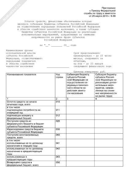 - 2626Сведения об остатке средств, финансовым обеспечением которых являлись субвенции бюджетам субъектов Российской Федерации на осуществление переданных полномочий Российской Федерации в области содействия занятости населения, а также субсидии бюджетам субъектов Российской Федерации на реализацию дополнительных мероприятий, направленных на снижение напряженности на рынке труда субъектов Российской Федерации