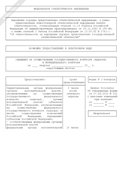 - 2631Сведения об осуществлении государственного контроля (надзора) и муниципального контроля. Форма № 1-контроль (квартальная)
