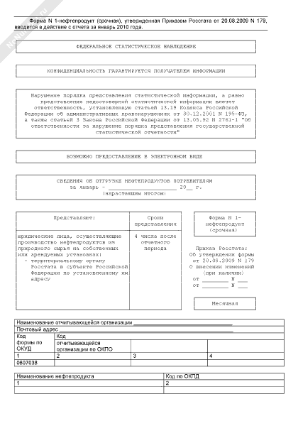 - 2635Сведения об отгрузке нефтепродуктов потребителям. Форма № 1-нефтепродукт (срочная) (месячная)
