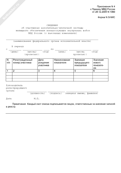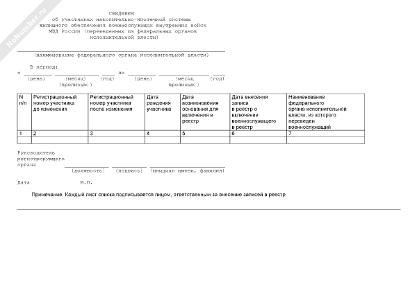 - 2701Сведения об участниках накопительно-ипотечной системы жилищного обеспечения военнослужащих внутренних войск МВД России (о внесенных изменениях). Форма № 5/НИС