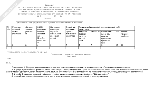- 2704Сведения об участниках накопительно-ипотечной системы, достигших 20 лет общей продолжительности военной службы, в том числе в льготном исчислении, и изъявивших желание воспользоваться накоплениями для жилищного обеспечения